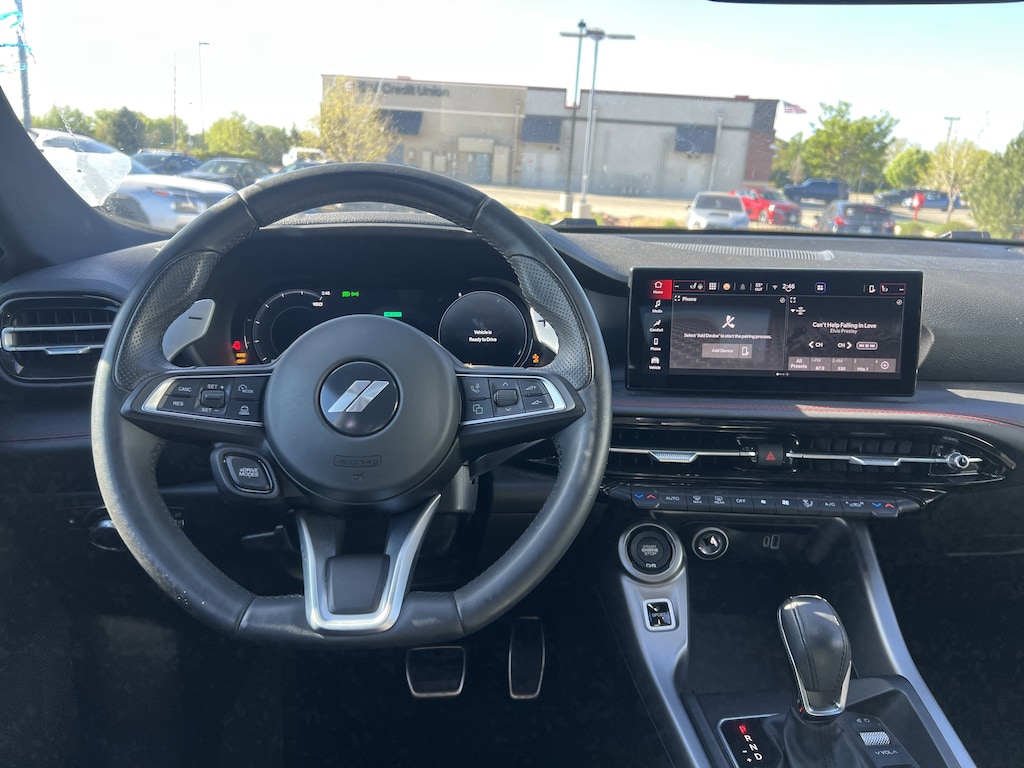 The Hornet R/T AWD features a bold, performance-inspired design combined with modern connectivity features. Its interior includes a digital instrument cluster and a large touchscreen infotainment system that supports smartphone integration.