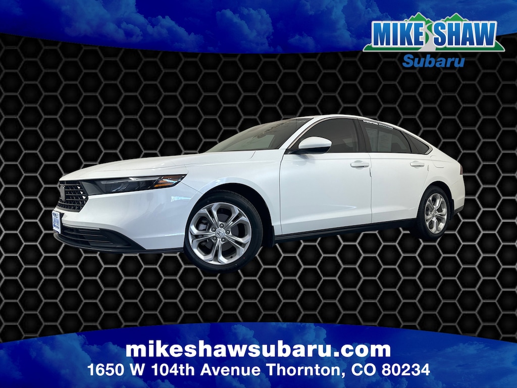 29/37 City/Highway MPG *Another Mike Shaw One-Owner Vehicle, *No Accident History on Carfax*, Black Cloth, 4-Wheel Disc Brakes, ABS brakes, Adaptive Cruise Control: Adaptive Cruise Control (ACC) with Low-Speed Follow, Air Conditioning, Alloy wheels, Apple CarPlay/Android Auto, Auto High-beam Headlights, Automatic temperature control, Brake assist, Compass, Delay-off headlights, Dual front impact airbags, Dual front side impact airbags, Electronic Stability Control, Emergency communication system: HondaLink Assist, Exterior Parking Camera Rear, Fabric Seat Trim, Front anti-roll bar, Front Bucket Seats, Fully automatic headlights, Illuminated entry, Knee airbag, Lane departure: Lane Keeping Assist System (LKAS) active, Outside temperature display, Overhead airbag, Panic alarm, Radio: 160-Watt AM/FM Audio System, Rear anti-roll bar, Rear side impact airbag, Remote keyless entry, Security system, Speed control, Steering wheel mounted audio controls, Telescoping steering wheel, Tilt steering wheel, Traction control, Trip computer.Platinum White Pearl 2023 Honda Accord LX FWD